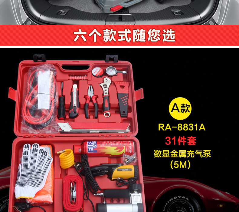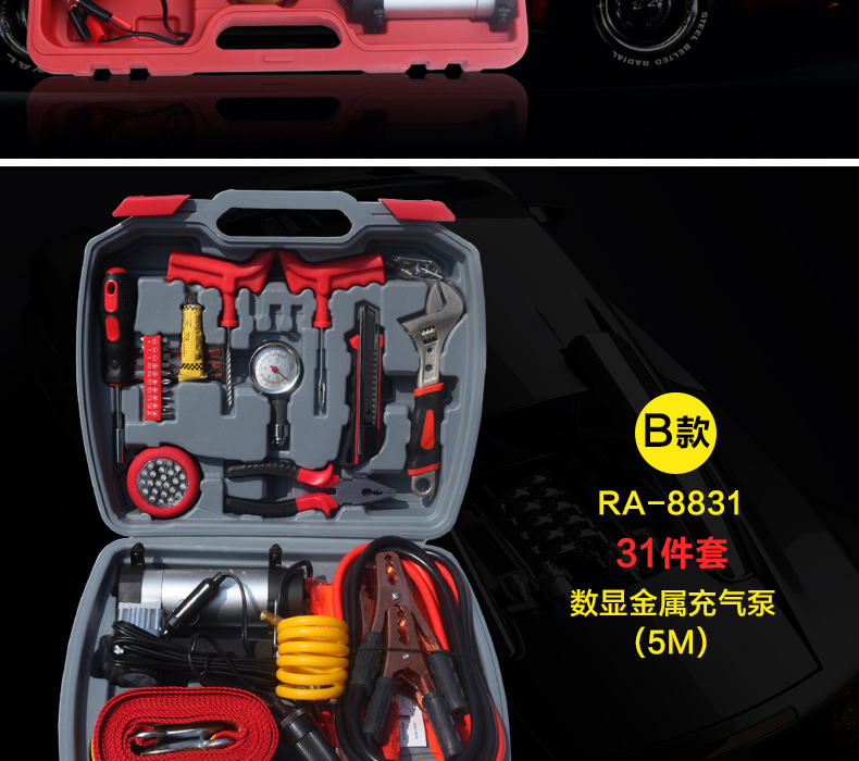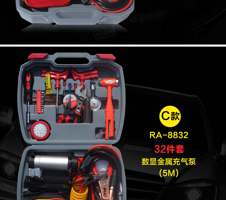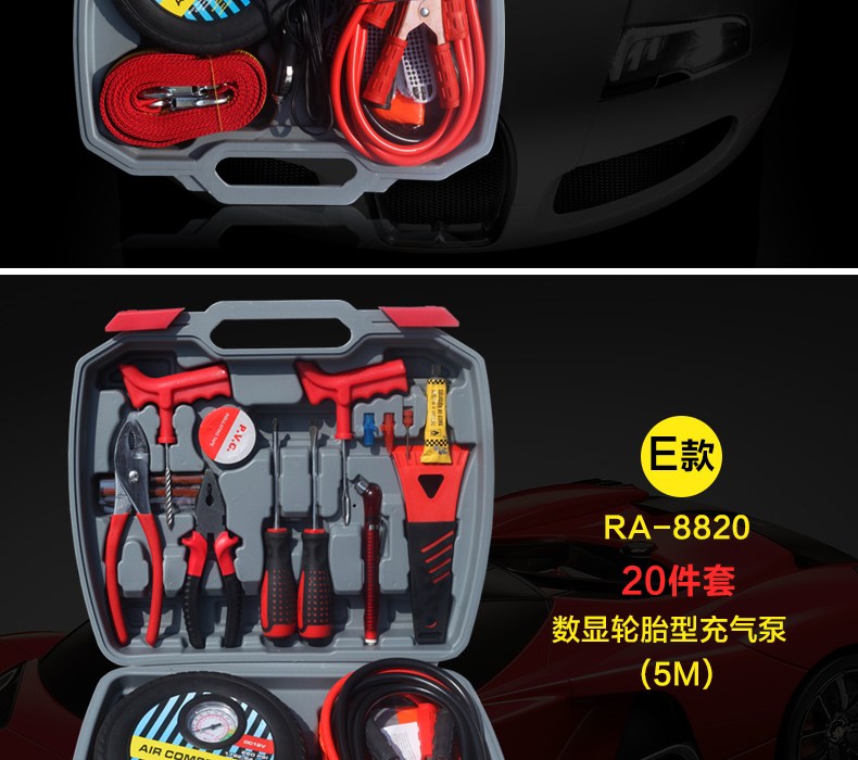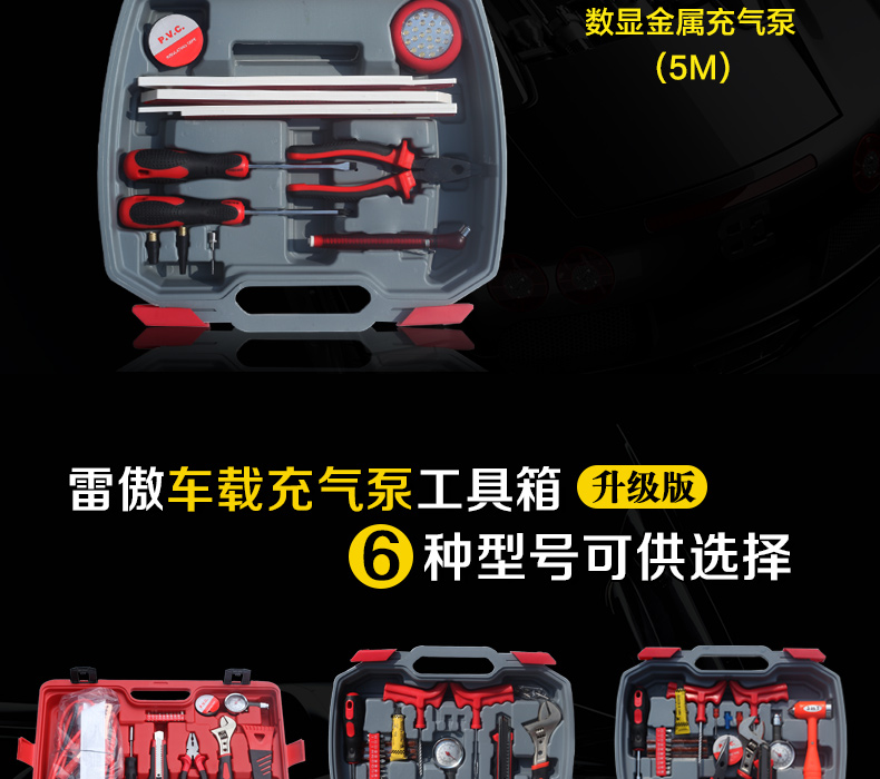 雷傲汽車用打氣泵便攜式充電車載充氣泵輪胎打氣泵補胎針組套12v - 40663493679